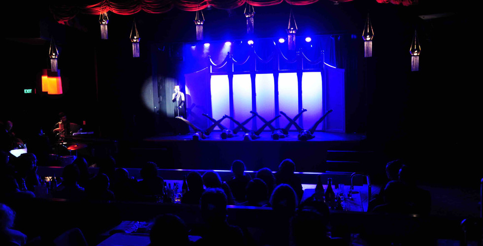 Having traditionally performed ten-minute sets at events and functions, Opening Night was a massive undertaking with the management of a venue, coordination of performers and design of all the technical elements ... not to mention the presentation of two hours of entertainment. Most excitingly, though, performing in a theatre provided the perfect setting for the selection of routines waiting patiently in the wings for just such an opportunity: Light Dance - featuring a single dancer, retractable light and surrounding darkness; Mermaids - synchronised swimming at it's glamorously land-locked best; and Mein Herr - originally choreographed for the Hobart College production of Cabaret in 2013 and, ever since, one of our Night Witches' absolute favourite routines – singing notwithstanding!